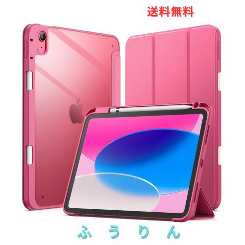 JETech iPad(A16)ケース 第11/10世代(2025/2022モデル)用Pencil収納可能 透明バックカバー 薄型 スタンド 衝撃吸収 タブレットカバー オートウェイク/スリープ機能 (ピンク)