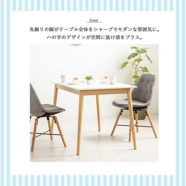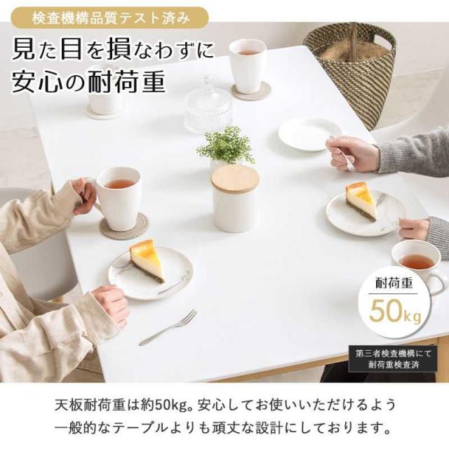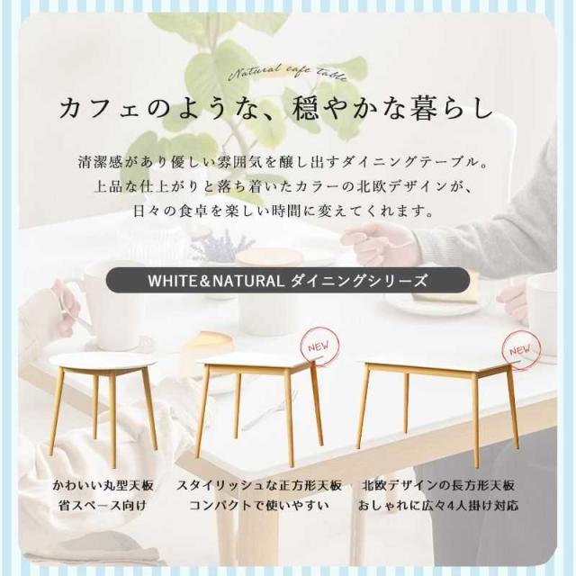 清潔感のある白い天板と、温もりを感じるナチュラルカラーの木脚が魅力のツートンダイニングテーブル