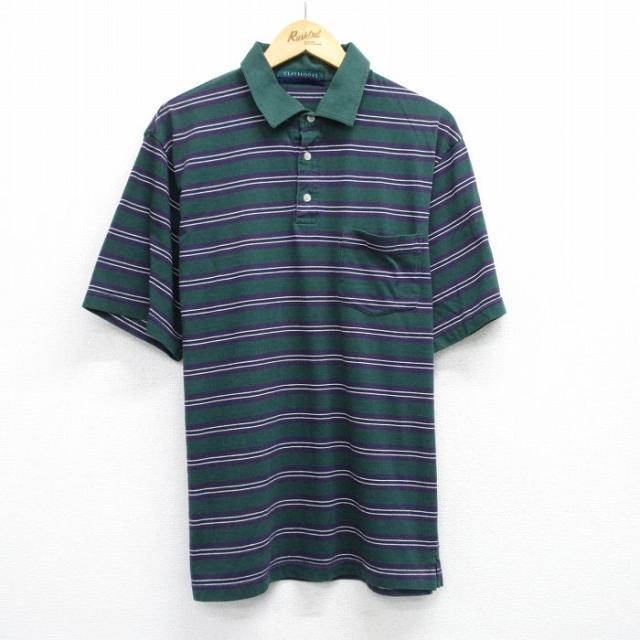 古着 半袖 ポロ シャツ メンズ 緑他 グリーン ボーダー spe XLサイズ 中古 トップス 中古 古着