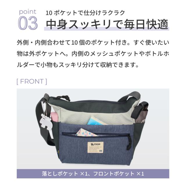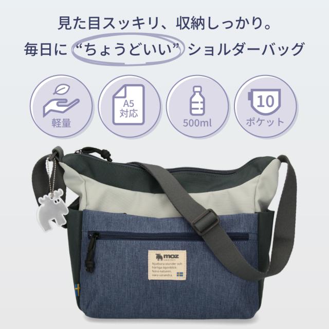 モズ ショルダーバッグ レディース メンズ ユニセックス 斜めがけ 軽量 仕事 旅行 大人 ポケット 多収納 かわいい コンパクト 通勤 カバン 黒 ブラック moz ZZEI28