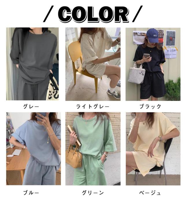 【全6色】セットアップ レディース 半袖 Tシャツ ショートパンツ 綿混 ルームウェア 上下セット 部屋着 夏 パジャマ ゆったり ショーパン 短パン カジュアル パンツ リラックスウェア 韓国風 シンプル 大人可愛い おしゃれ 寝間着 寝巻き 無地