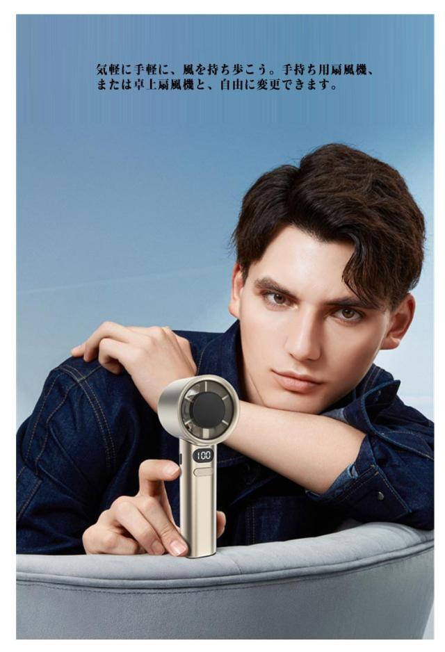 | 手持ち 扇風機!暑い夏を快適に愉しむための定番アイテム、ハンディファン。気軽に手軽に、風を持ち歩こう。手持ち用扇風機、または卓上扇風機と、自由に変更できます。 付属品にストラップ付き、瞬間首掛け扇風機になれますので、優れる多様性です。 軽量ミニサイズ。室内外問わずに活躍できる小型扇風機です。 USB充電式!1200mAhバッテリーを内蔵し、やパソコン、USB充電器に接続すると充電できる扇風機です。 超高速風・風量120無段階調整!業界革新的な高速ドローンモーターを搭載し、最大ハイパワーなのにハンディファン 静音 です。風量120までに達し、スクロールホイール設計で無段階調整が可能です。 | |