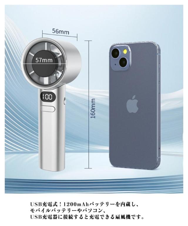 ハンディファン 1200mAh 120段階風量 卓上 扇風機 手持ち扇風機 携帯扇風機 小型 軽量 ミニ扇風機 静音 ポータブル扇風機 USB充電式 卓上扇風機 ハンズフリー LEDデジタル表示 強力送風 急速冷感 涼しい 軽量 熱中症対策 暑さ対策 アウトドア ストラップ付き