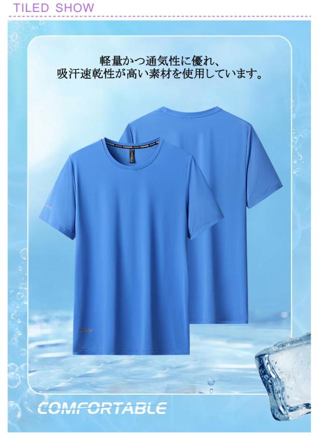 大きいサイズ! アイスシルクTシャツ 冷感 -7℃ tシャツ メンズ 夏 涼しい 冷たい 半袖 トップス 吸汗速乾 無地 おしゃれ 速乾tシャツ ドライTシャツ クルーネック ビッグtシャツ ゆったり 超大きいサイズ 韓国ファッション カジュアル 通気性 スポーツ 送料無料