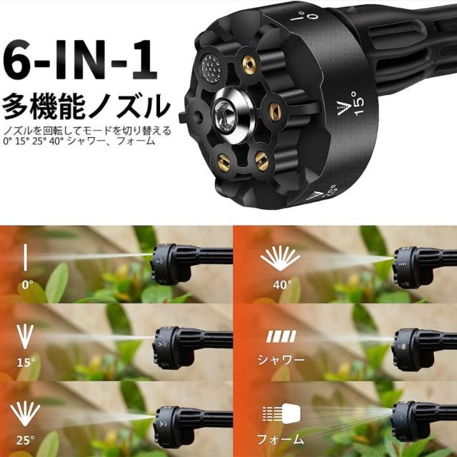 6-in-1多機能延長ノズル付き、0°/15°/25°/40°/シャワー/ストレートの六つ水噴射モードがある、使用シーンに合わせて選択できてとても便利です。