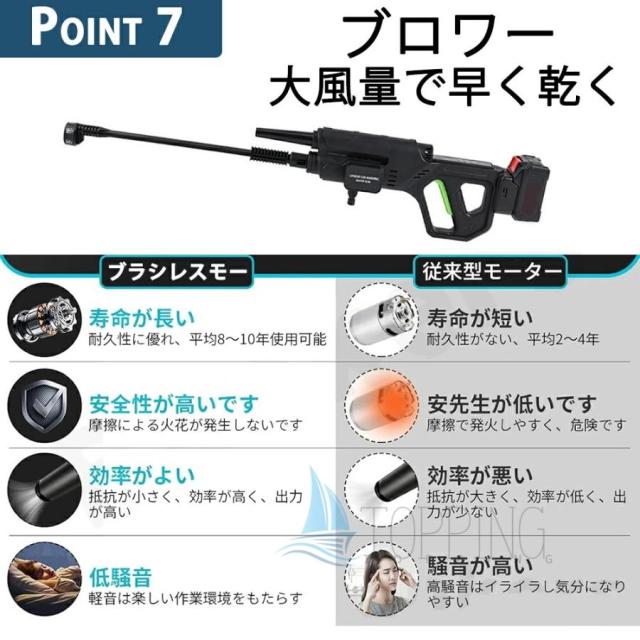 10MPa 高圧洗浄機 コードレス 充電式 3段階水圧調整 ブラシレスモー 6段階マルチスプレー 強力噴射 高圧クリーナー自吸式 家庭用 ベランダ 収納ケース付 PSE認証