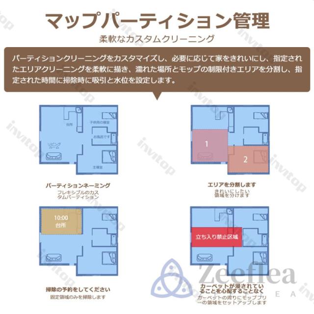 エコジー ロボット掃除機 水拭き 両用は最大5階分のマップデーターを同時に保存できます。アプリから簡単に指示を出し、ピンポイントで掃除が可能です。