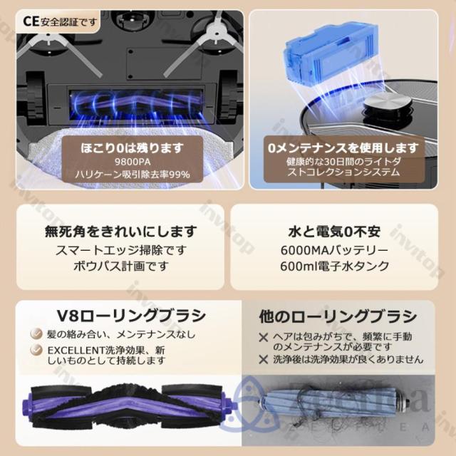 Zeefleaロボット掃除機は、パワフルな吸引力と長時間の稼働時間によって、掃除効率を高めます。最大9800Paの吸引力で、細かなホコリやゴミ、ペットの毛などをしっかりと吸い取ります。さらに、最長130分間の連続稼働時間は、一度の充電で多くの部屋を掃除することができます。9800pa強力な吸引力で、髪の毛やペットの毛をしっかりと吸い込めます。ロボット掃除機はブラシレス吸引口設計です。