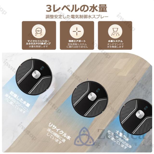 一台二役、通常吸引と水拭き掃除は同時に行うことができます。掃除の手間がグンと減ります。さらに、床の種類によって、吸引力も3段階で調整可能で、モップ濡れ具合の出水量も3段階設定できます。