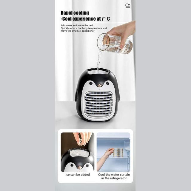 ペンギン水冷ファン 空気クーラー オフィス デスクトップ家庭用ポータブル エアコン ファン USB 水冷ファン 製品の説明: ファンには 3 つのレベルの風があり、上下に調整できます。ノブでモードを設定し、必要に応じてブラインドで風向きを調整できます。涼しい風はあなただけのものです。内部の水容器に氷水を入れると、ファンが涼しい風を吹き出して空気に潤いを与え、ドア内の温度を下げて疲労を軽減します。かわいいペンギンの形がこの空気クーラーをさらに引き立てます USB 充電ポート付きの 2000mAh 充電式バッテリーを内蔵し、コンピュータ、モバイル、車で充電できます。電力不足の心配はありません。冷却ファンは作業中の騒音が少なく、静かで快適な休憩や作業環境を提供します。水冷ファンはサイズが小さく、設置が簡単ですテーブルやベッドサイドに設置でき、省スペースで寝室やオフィス、車などでの使用に適しています。仕様:水槽容量:300ml入力電圧/電流:DC5Vバッテリー容量: 2000mAh/(18650リチウム電池)使用電力:2W?8W動作電流:0.6A?1.6A使用時間:1. ファンのみを 3 ? 8 時間オンにします。2. スプレーとファンは約1.54時間同時にオンになります製品には次のものが含まれます:1xエアクーラー1xデータケーブル1x中国語と英語のマニュアル