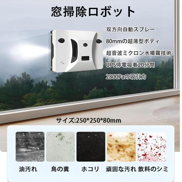 窓拭きロボット 自動ガラス掃除機 窓掃除ロボット 双方向自動スプレー 超薄型ボディ 強力吸引 落下防止 窓ガラス掃除 高層窓天井用 リモコン付き