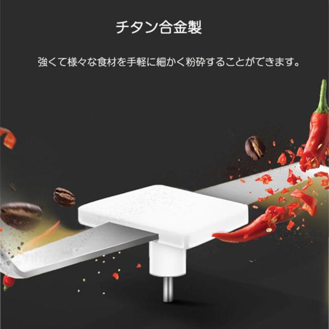 【パワフル】 銅コイルモーターを搭載しており、SUS304ステンレス鋼で作られたチョッパーカッターにより、数秒回転するだけで食材を広範囲に細かく挽けます。旧モデルと違い、挽き具合をコントロールできるようになっています。