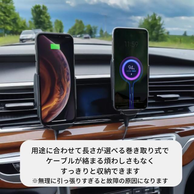 ●車で簡単にiPhone15/16やAndroidスマホをこれ1つで充電できるケーブル巻き取りタイプの車載充電器