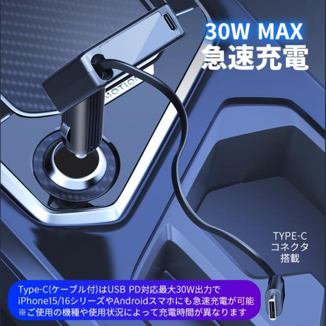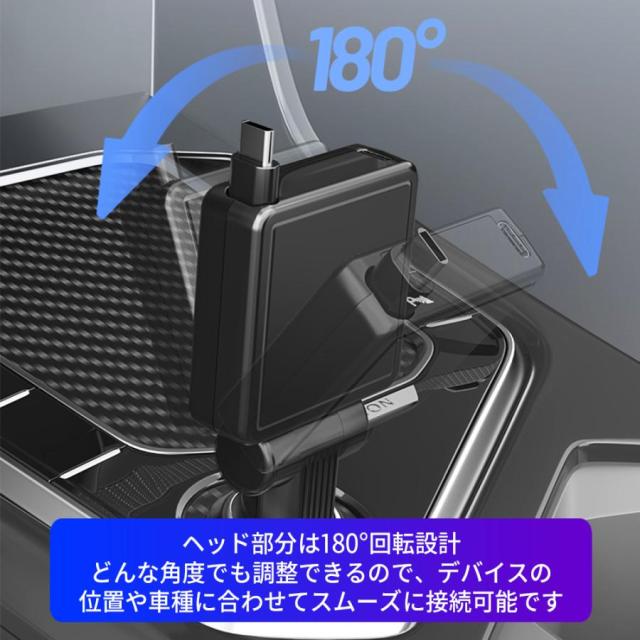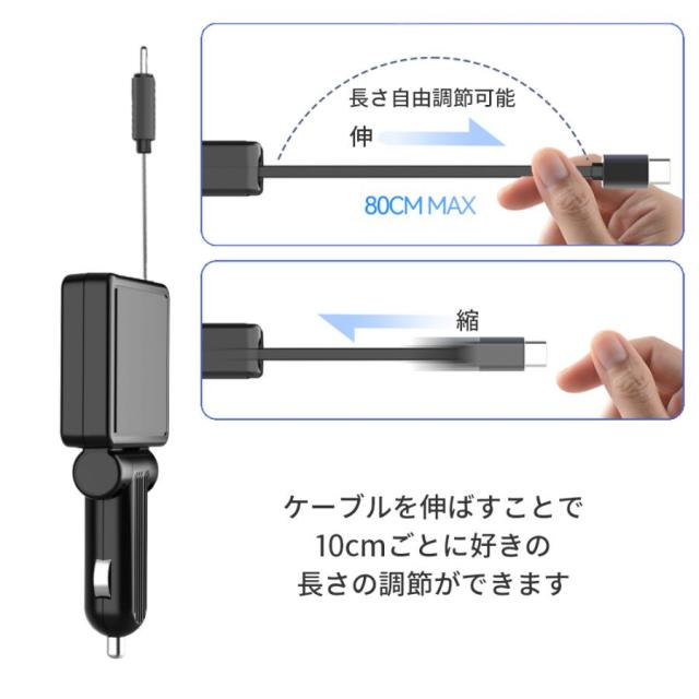 シガーソケット 最新発売 USB C 車 充電器 車載 巻き取り式 車用 カーチャージャー 限定セール スマホ iPhone 携帯 カー充電器 タイプC Type-C 急速充電 PD