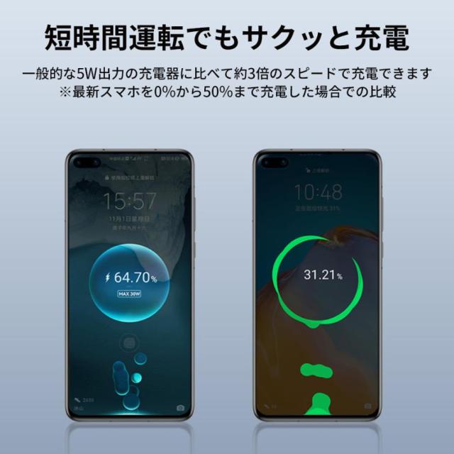 ●Type-C(ケーブル付)はUSB PD対応最大30W出力の急速充電が可能