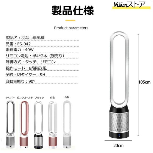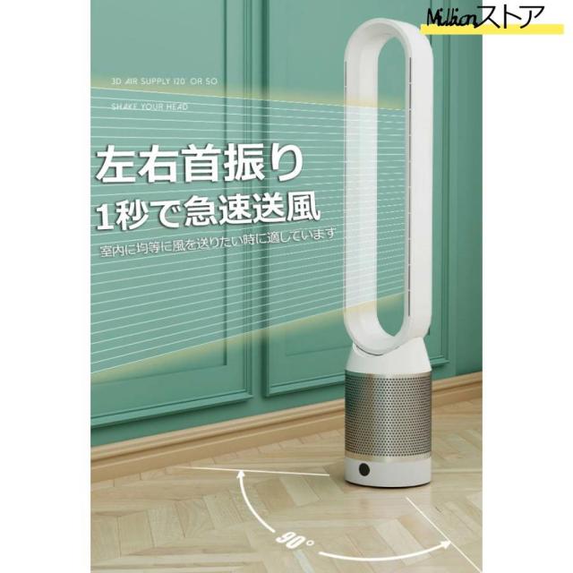 タワーファン 冷風 スリム 羽なし 空気清浄機 脱臭 首振り タイマー機能 空気清浄機能付 タワーファン 羽根無 リモコン付 暖風なし
