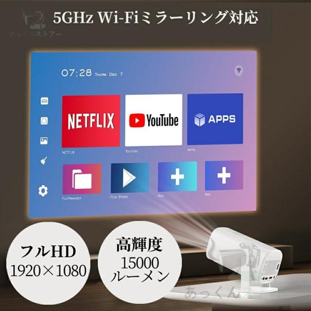 プロジェクター 天井投影 小型 家庭用 Android TV 11.0 5G wi-fi 6 対応 天井 ホームシアター 子供 HDMIケーブル?リモコン付属 一人暮らし ホームシアター
