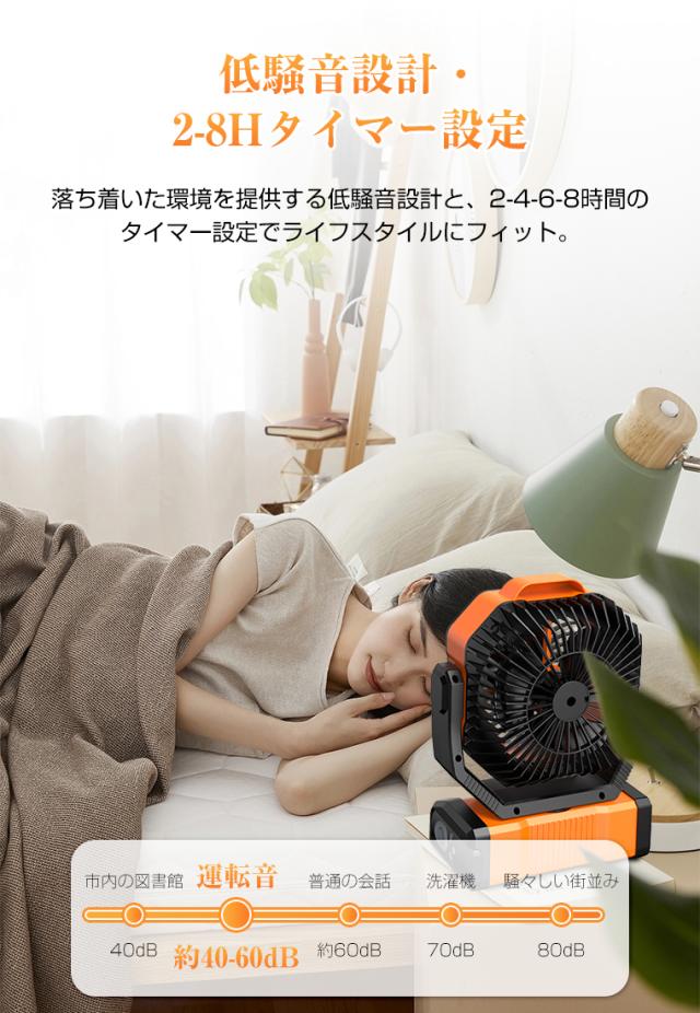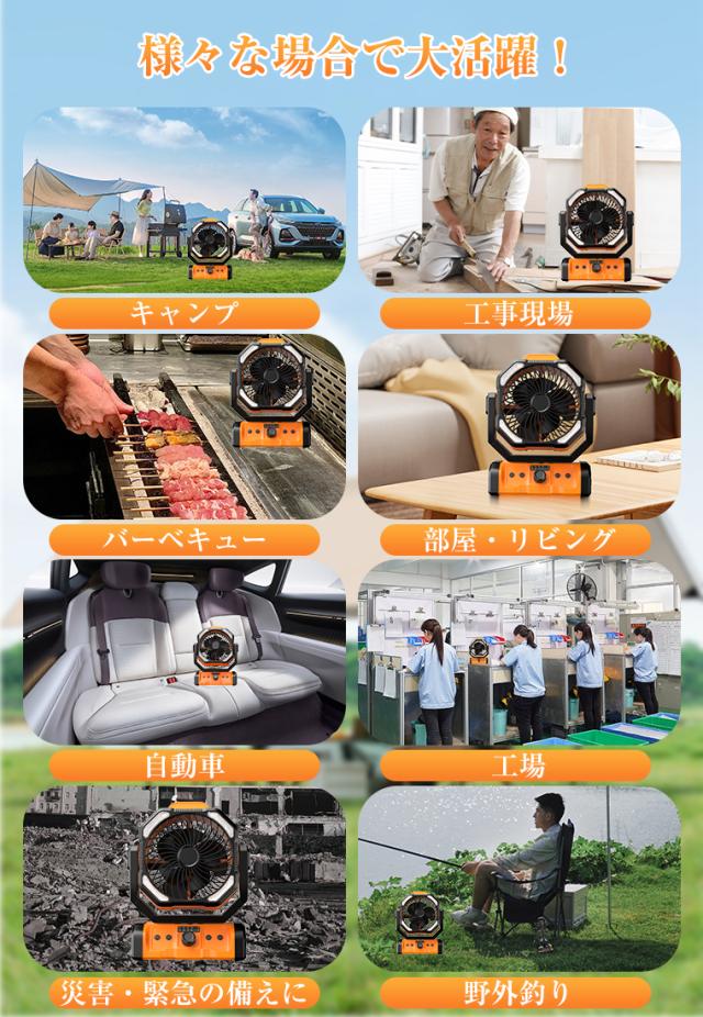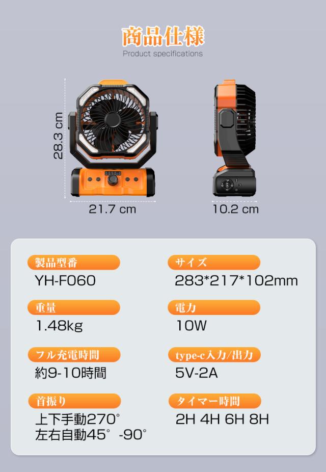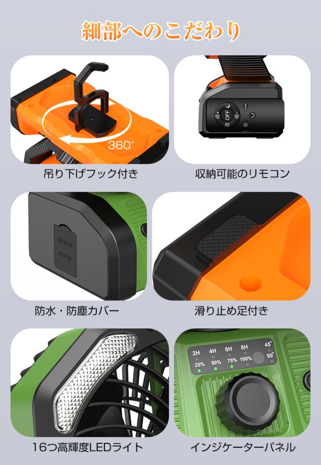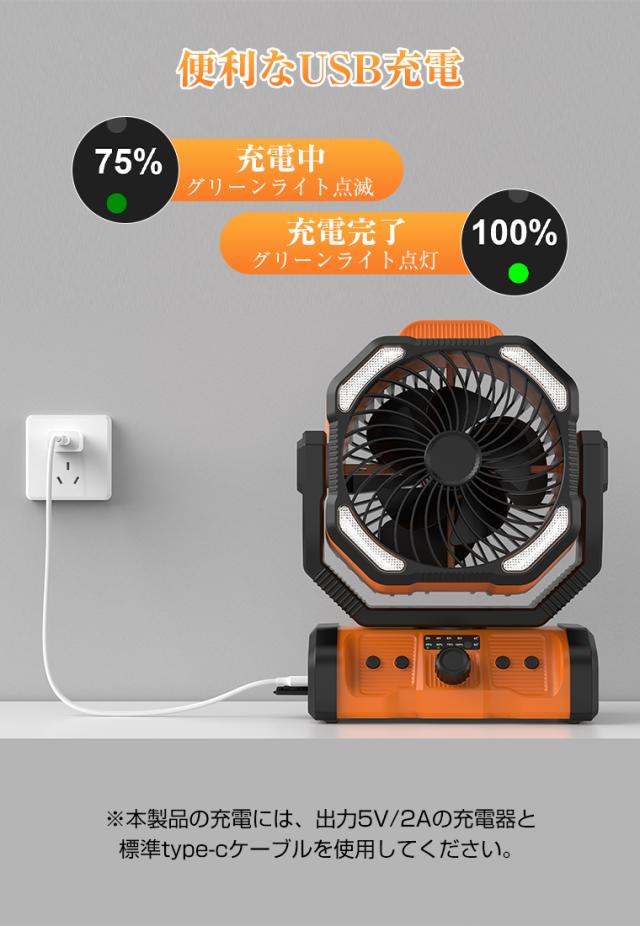 20000mAhの超大容量リチウムイオンポリマー電池を内蔵しています。フル充電の場合、ファンで最大38時間、LEDライトで最大201時間の航続が可能です。