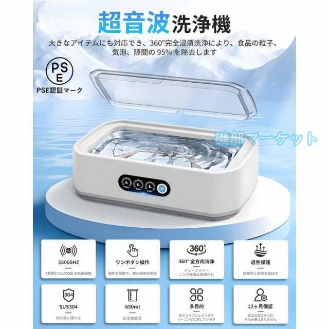 超音波洗浄機 最新発売 メガネクリーナー メガネ洗浄機 小型超音波洗浄器 650ml大容量55000Hz強力振動 3段階タイマー機能 眼鏡洗浄機超音波 超音波クリーナー 軽量 限定セール