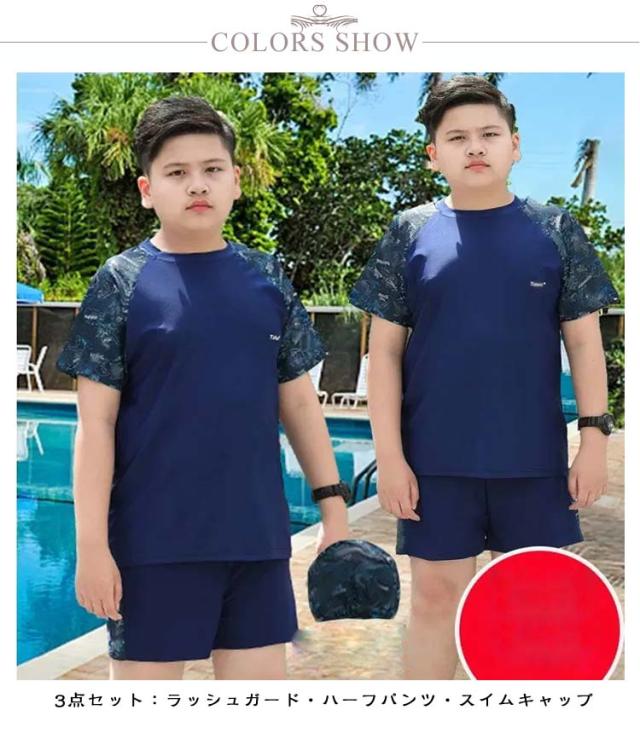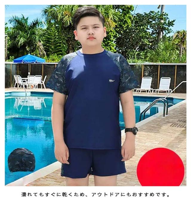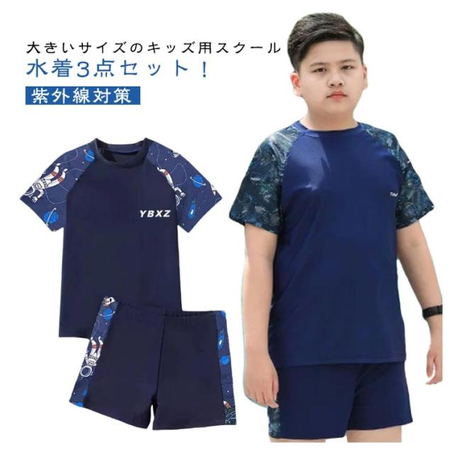 大きいサイズ スクール水着 キッズ水着 男の子 3点セット キャップ付き 半袖 ラッシュガード ハーフパンツ 子ども用水着 学生 セパレート スイムウェア 子供 上下セット ジュニア水着 子供用 UPF50+ UVカット 紫外線対策 送料無料