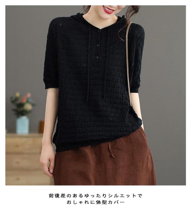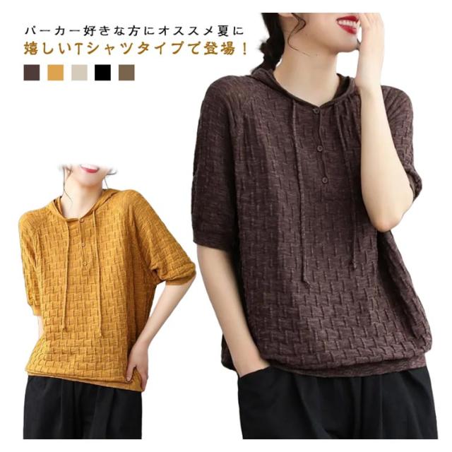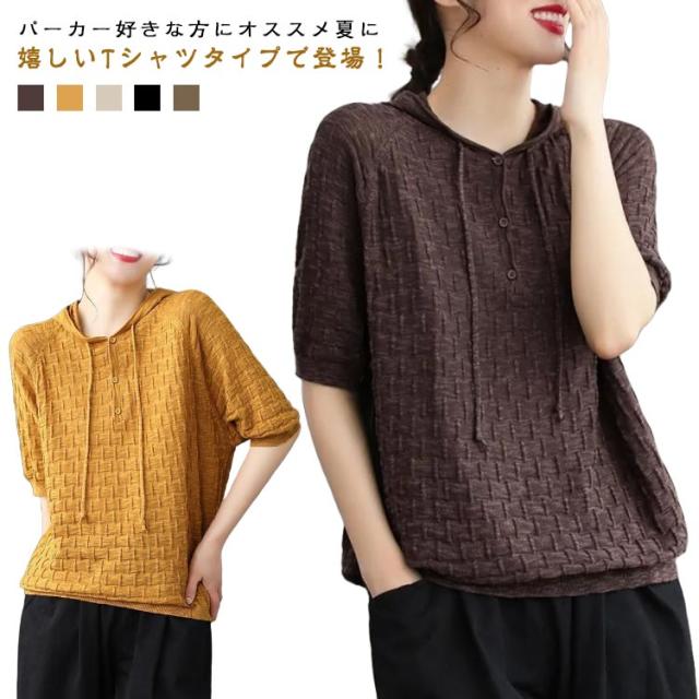 パーカー パーカー レディース カットソー 春 テーシャツ tシャツ フード付きtシャツ プルオーバー トップス 涼しい 半袖 無地 夏 接触冷感 夏 フーディー Tシャツ フード 薄手 シンプル 大きいサイズ カジュアル