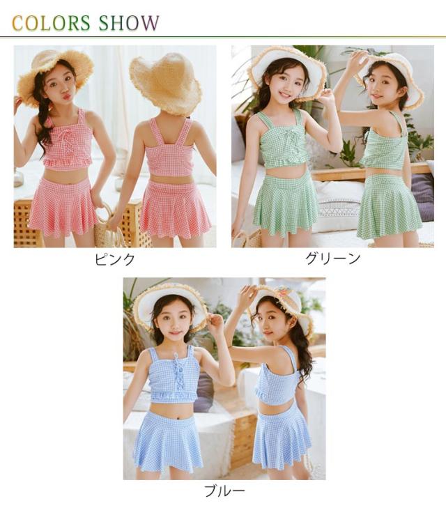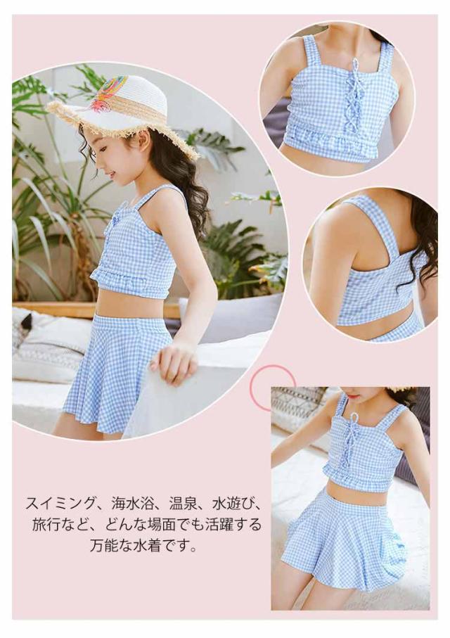 女の子 キッズ 上下セット 水着 スカート 子供 スポーツウエア セパレート 保育園 幼稚園 スイミングウェア 水遊び 2点セット キッズ 可愛い 女児用 チェック 子供水着 キッズ水着 スクール プール