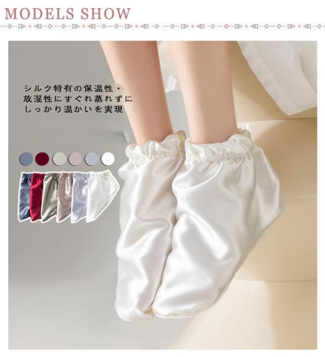 | エアコンによる足の冷え むくみを解消する寝る時用の靴下 シルク特有の保温性・放湿性にすぐれ蒸れずにしっかり温かいを実現 履き心地も軽く、締め付け感がないので着用ストレスフリー。 伸縮性にすぐれており良く伸びる素材。 | |