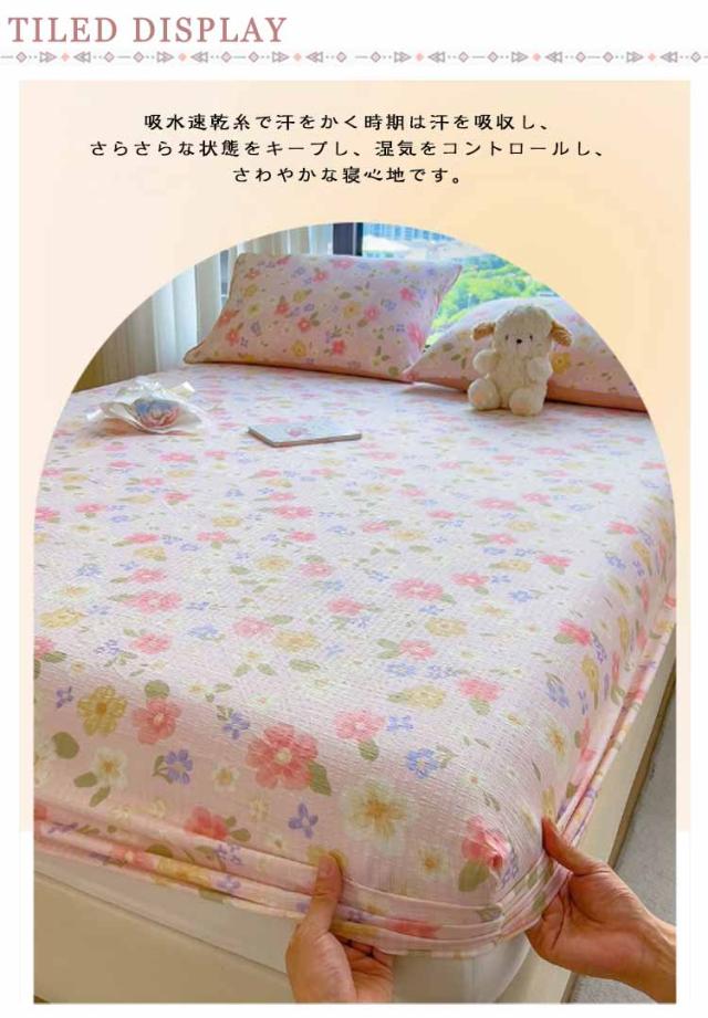 | 夏でもひんやり気持ちいいベッドシーツ。 吸水速乾糸で汗をかく時期は汗を吸収し、さらさらな状態をキープし、湿気をコントロールし、さわやかな寝心地です。 のびのび素材でヨレずにぴったりフィット!よく伸びるので手間をかけずラクラク装着できます。 ご自宅で洗濯ができ、お子様がいるご家庭でも清潔にご使用いただけます カラー・サイズ展開が豊富で、お部屋の雰囲気に合わせてお選びいただけます | |