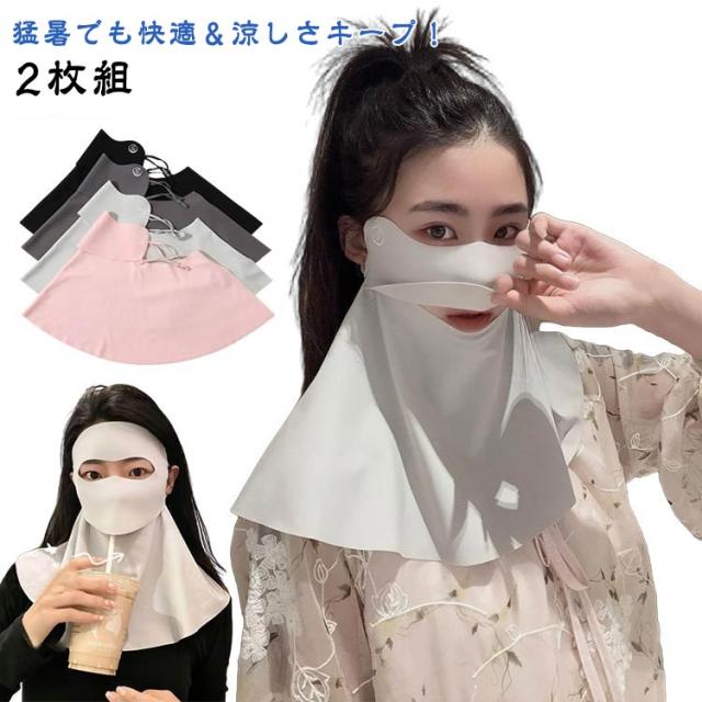 フェイスマスク 日焼け防止 uv 紫外線 スポーツ マスク フェイスマスク メンズ レディース フェイスガード ネックガード 接触冷感 フェイスカバー 2枚組 uvカット 日よけ 冷感 日よけマスク 日焼け UPF50+ 冷感-5℃ 軽量