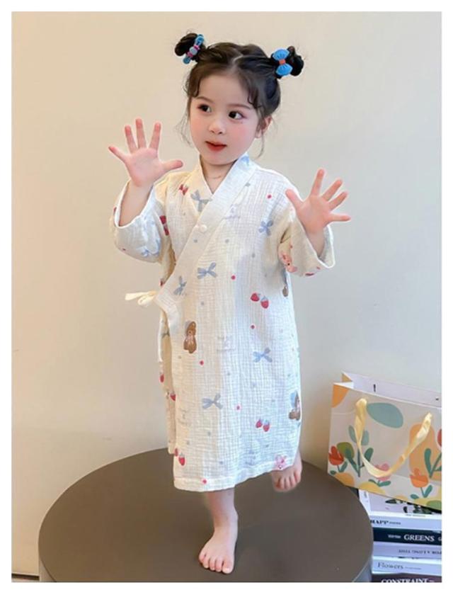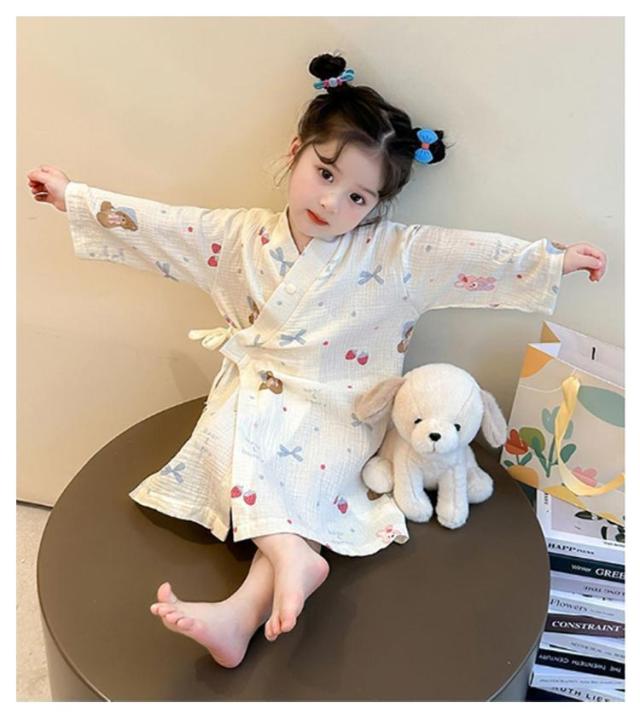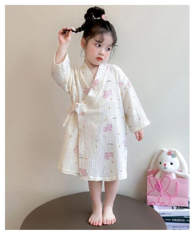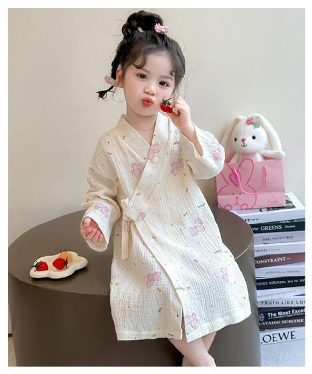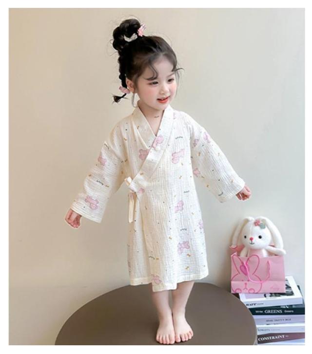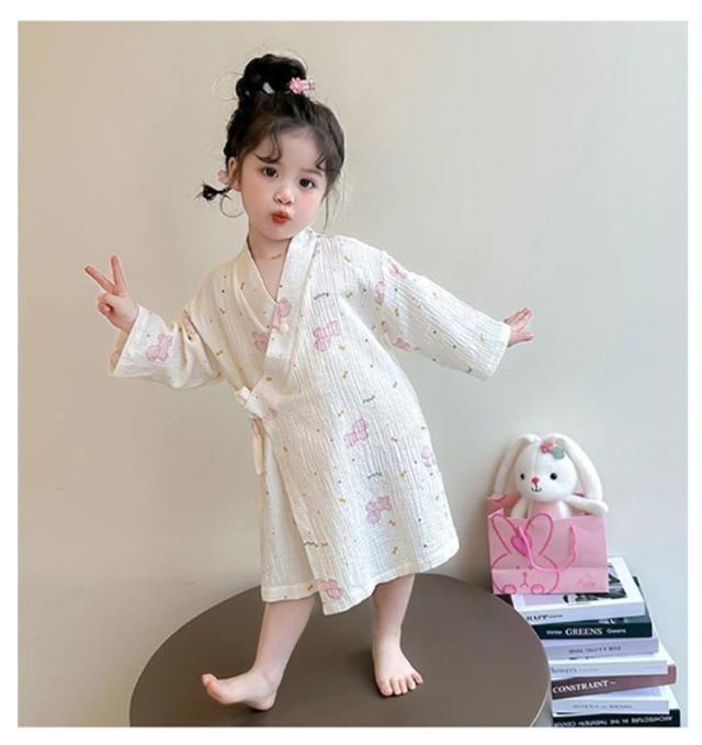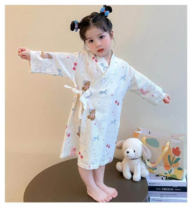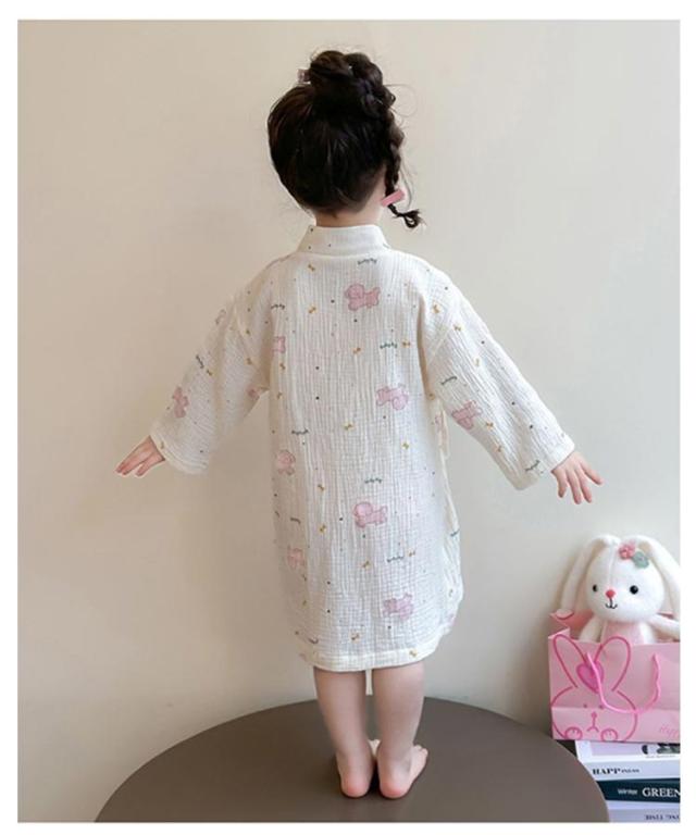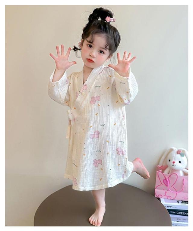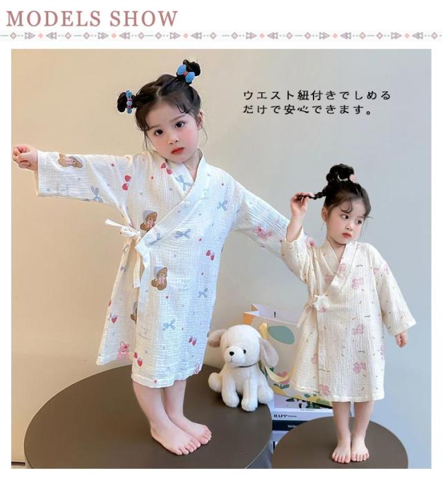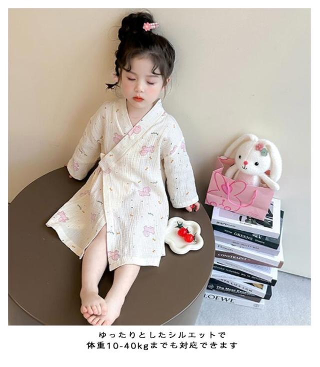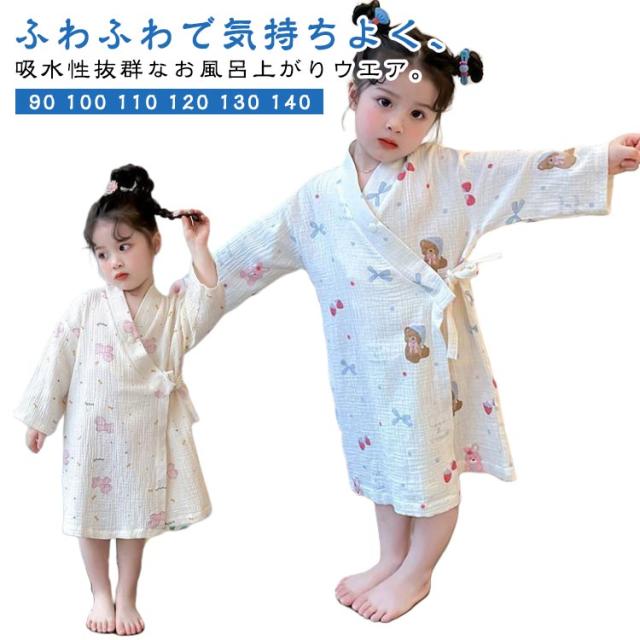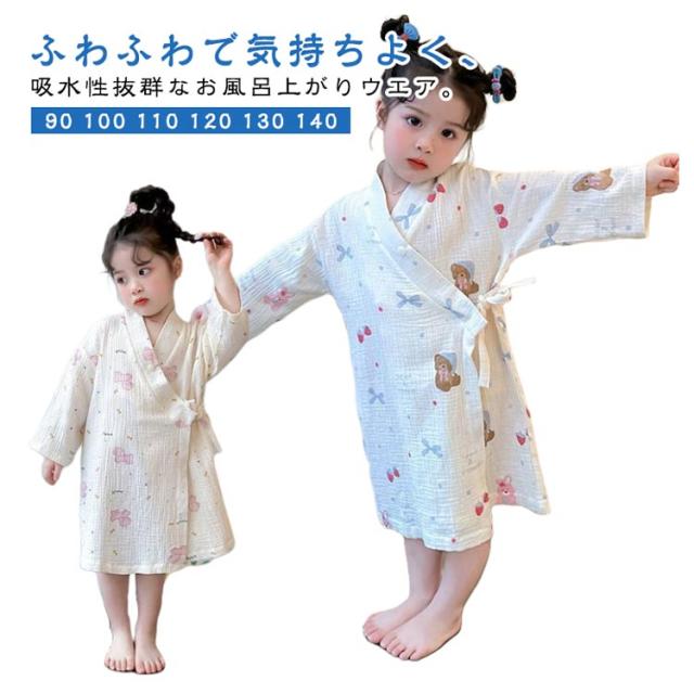 子供服 綿 女の子用 春 男の子用 ロング丈 ローブ ナイトガウン ホテル 長袖 秋 冬 前合わせ 前開き バスローブ 子供服 薄手 柔らか ふんわり仕上げ 優しい肌触り 可愛い お風呂上がり 湯冷め対策 90 100 110 120 130 140