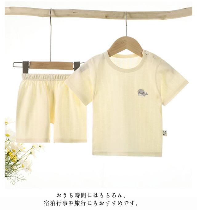 | 【73-120cm】【半袖】【上下セット】 お部屋でもおしゃれを楽しめるセットアップ。 ほどよい伸縮性があるので着心地の良いTシャツパジャマです。 おうち時間にはもちろん、宿泊行事や旅行にもおすすめです。 ボトムは動きやすいゴム仕様で着脱もしやすい♪ 軽くて薄く通気性のある肌に優しい柔らかな生地、心地よい肌触り! | |