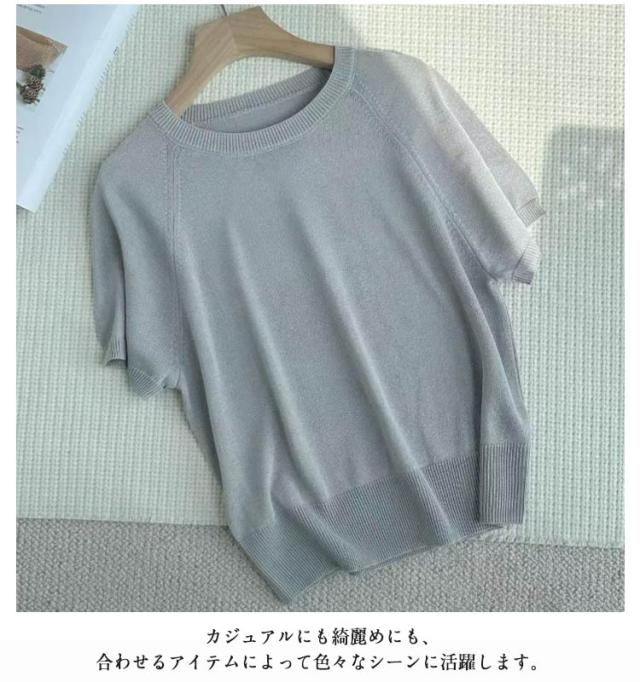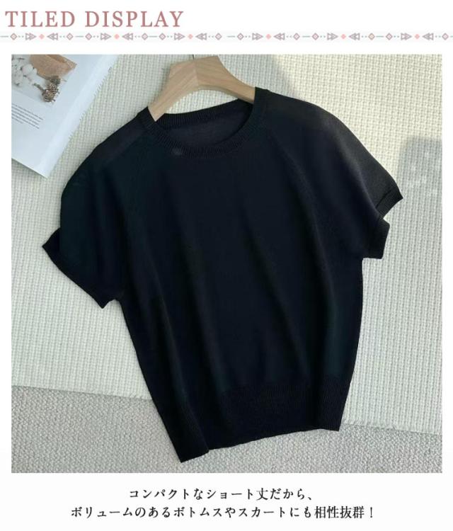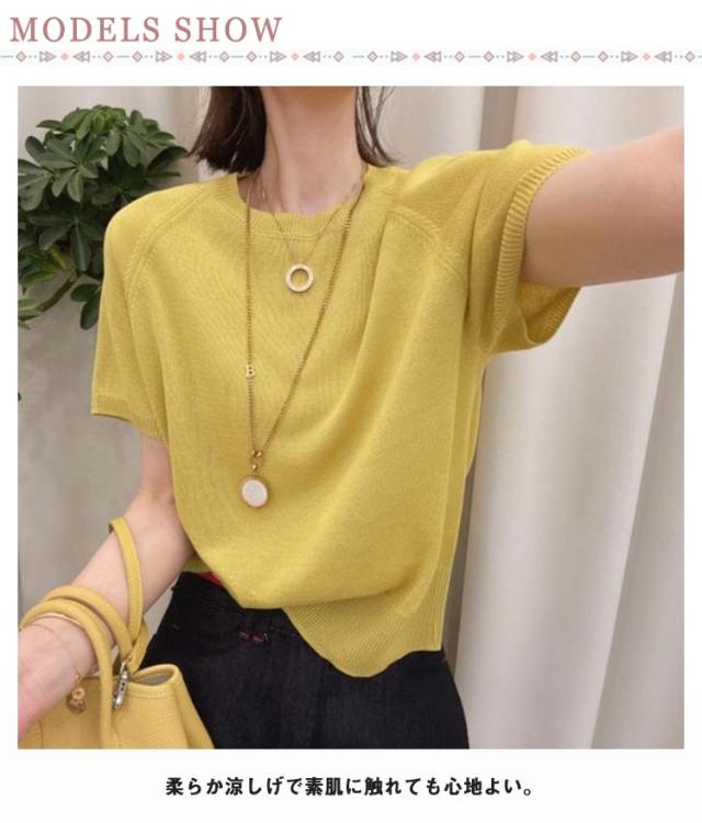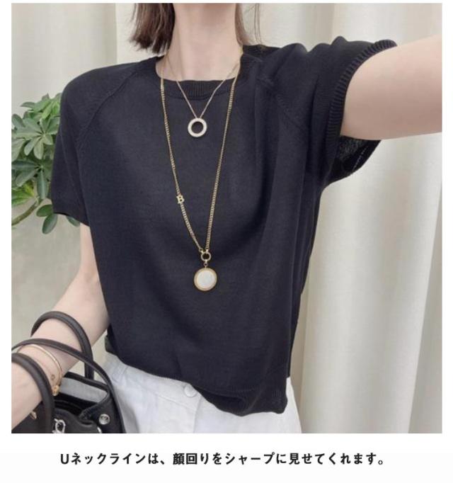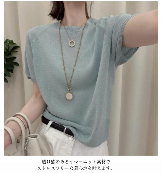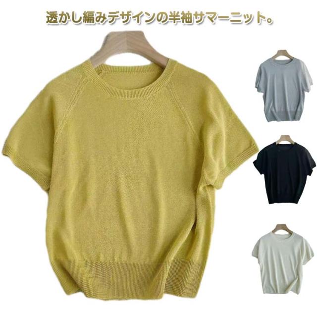 冷感 透け 夏 レディース ニット 20代 スーツインナー サマーニット 透かし編み プルオーバー インナー カットソー tシャツ Uネック ニット 透かし感 クルーネック 半袖 接触冷感 ひんやり 涼しい きれいめ カジュアル 体型カバー 春夏 丸首 30代 40代 40代 送料無料 春
