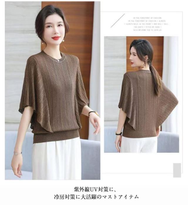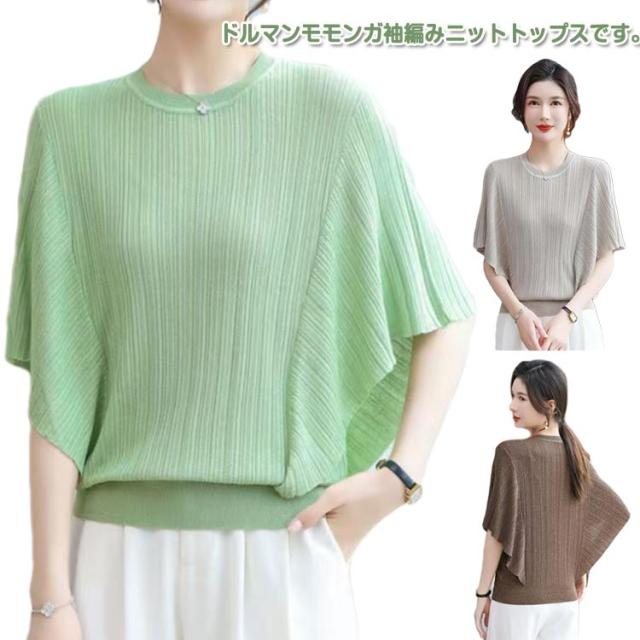 ニット シアー 春 透かし編み メッシュ トップス ゆったり 重ね レディース ドルマンニット トップス 春 夏 半袖 涼しい ティーシャツ きれいめ ぽわん袖 プルオーバー 大きいサイズ 大人 体型カバー 薄手 透かし編み 夏 日焼け防止 冷房対策