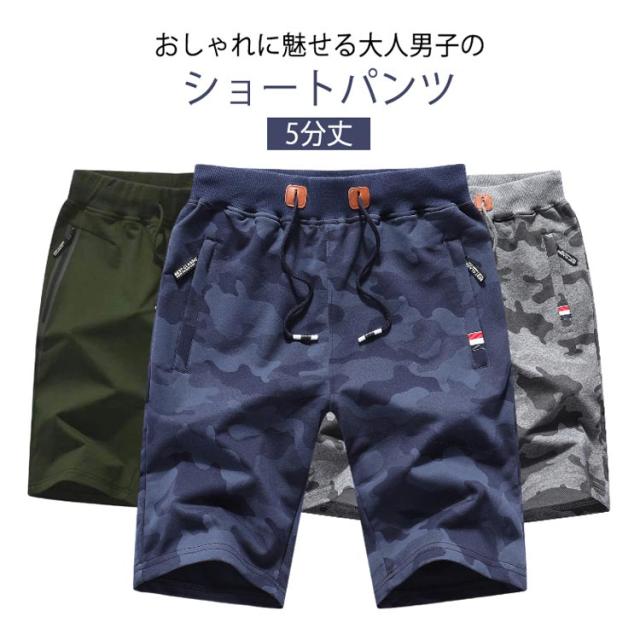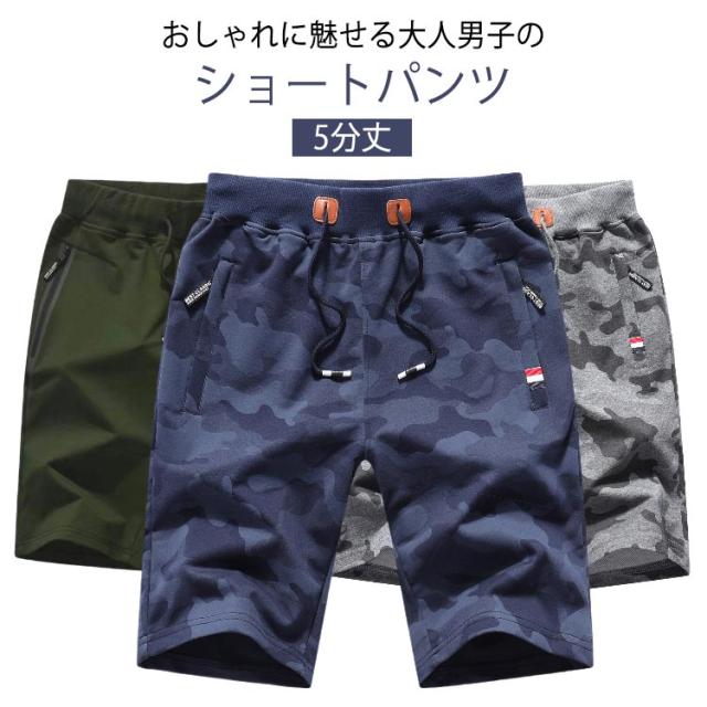 スウェットパンツ メンズ 半ズボン ゴルフウェア メンズ 膝上 5分丈 夏 サマー 迷彩柄 ショートパンツ ジャージ 下 涼しい 短パン ハーフパンツ ウエストゴム 部屋着 カジュアル