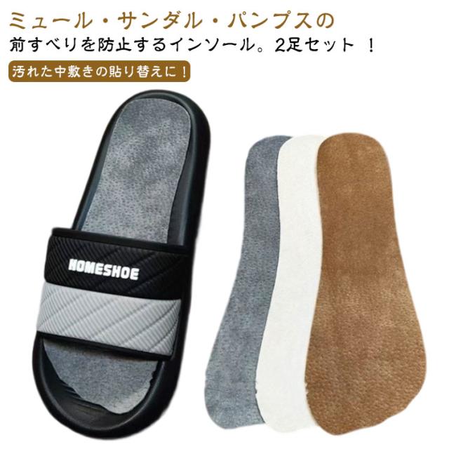 | 汚れた中敷きの貼り替えに!ミュール・サンダル・パンプスの前すべりを防止するインソール。2足セット ! 中敷の傷みや汚れを防止し、前滑りを防ぎます。 靴の中をいつも清潔な状態に保つのに効果的! 抗菌仕様なので、菌の増殖を抑え、防臭効果も抜群。 | |