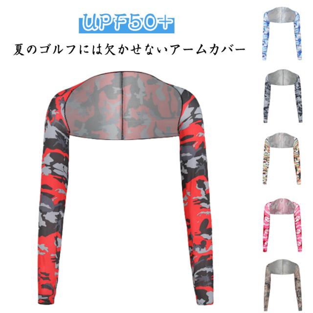 ゴルフウェア 冷感 UPF50+ 迷彩柄 総柄 2枚セット ショールアームカバー uvカット 2枚セット スポーツ 男女兼用 スポーツ