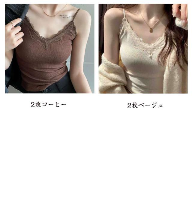 カップ付きキャミソール レース カップ付き キャミソール ブラトップ レディース Vネック 2枚セット タンクトップ キャミソール 下着 ブラキャミソール パジャマ 2枚セット ルームウェア