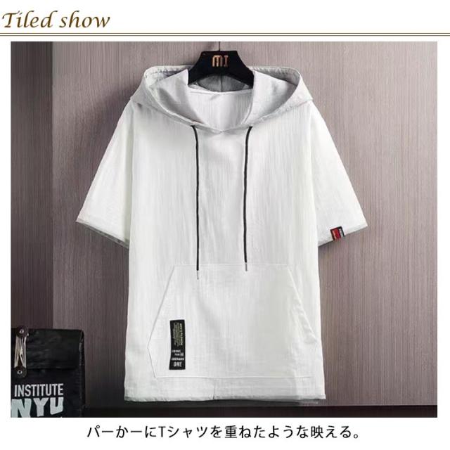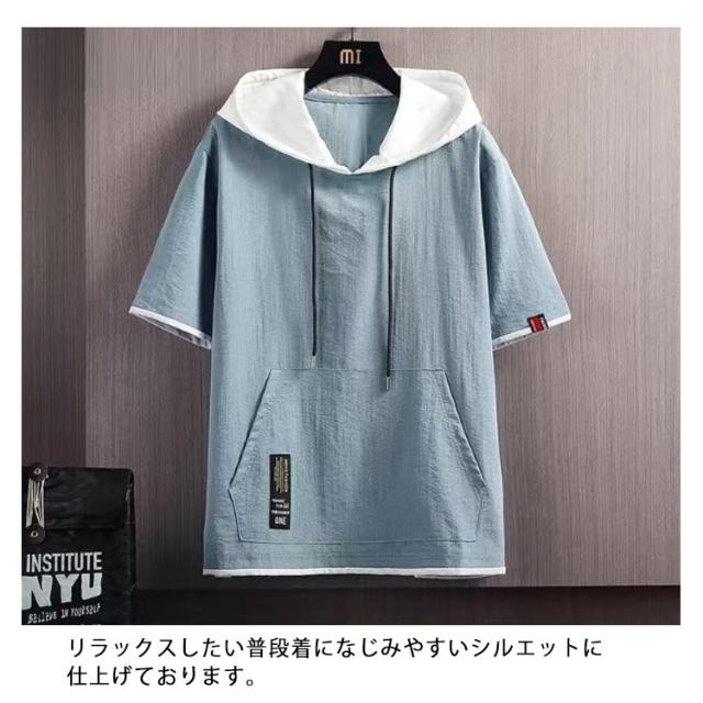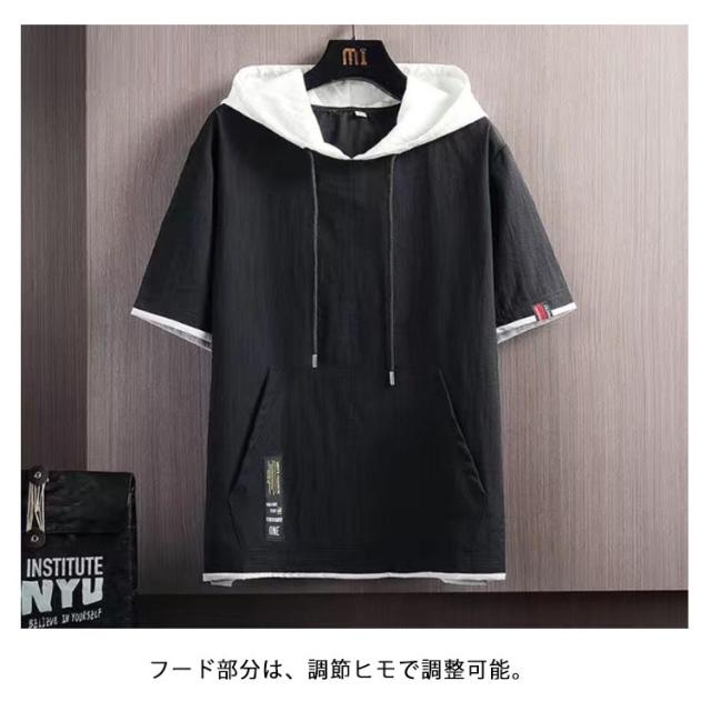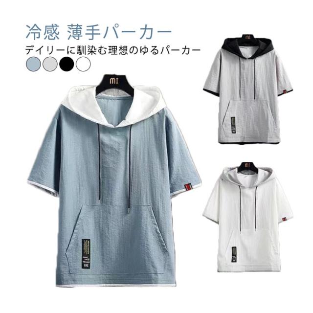 半袖パーカー トップス パーカー 夏用パーカー 夏 冷感 夏パーカー パーカ 涼感 無地 薄手パーカー フェイクレイヤード 半袖 パーカー フード付き カジュアル スポーツ サマーパーカー 薄手 男女兼用 シンプル 運動着 部屋着 夏服 スポーティ ダンス