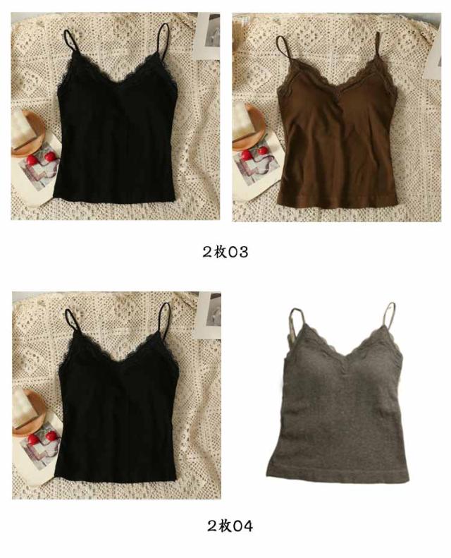 キャミソール 2枚セット Vネック レース レディース キャミソール カップ付きキャミソール カップ付き タンクトップ ブラキャミ 下着 ブラキャミソール パジャマ 2枚セット ルームウェア