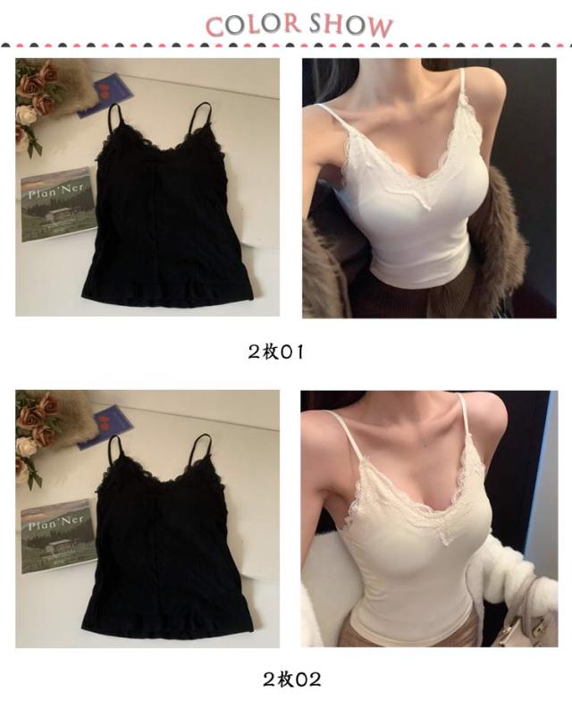 キャミソール ブラトップ 2枚セット キャミソール タンクトップ レース Vネック カップ付き カップ付きキャミソール ブラキャミ 2枚セット ブラキャミソール パジャマ レディース ルームウェア