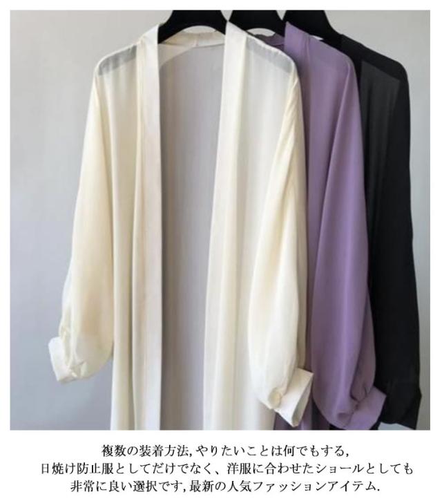 | ロング丈のシアーサマーカーディガン 軽やかな羽織心地は夏にもぴったり。 薄手な生地感なので、暑がりな方でも気温調節羽織として、インナー調節でシーズンレスで着用可能です。 ロングなので、気になるヒップやお腹周りの体型カバーとしても優秀です。 洗練されたシンプルなデザインはボトムスを選ばず幅広いシーンにぴったり。 さっと羽織るだけで抜け感をプラスします。 複数の装着方法,やりたいことは何でもする,日焼け防止服としてだけでなく、洋服に合わせたショールとしても非常に良い選択です,最新の人気ファッションアイテム. | |