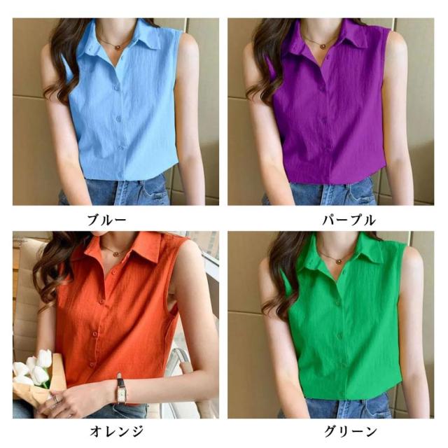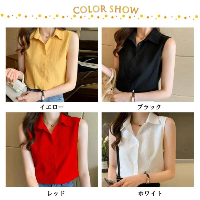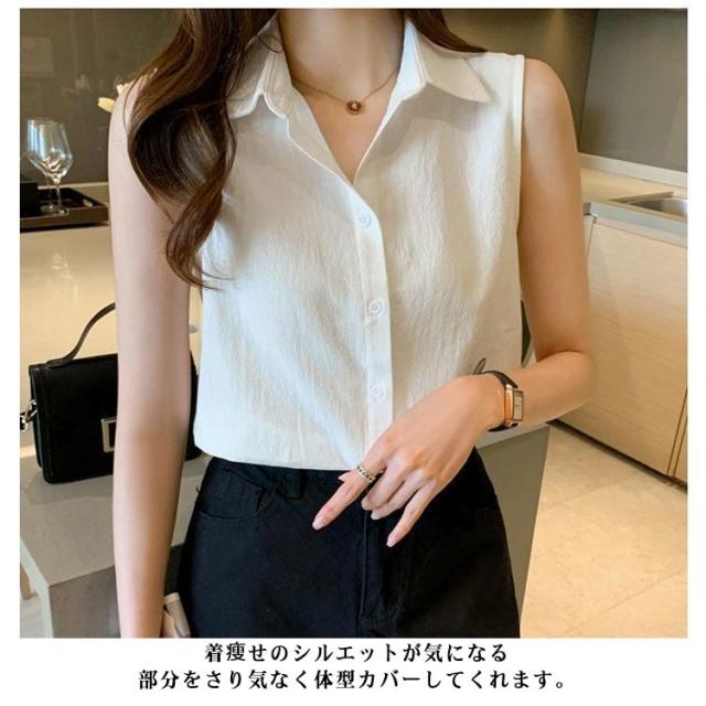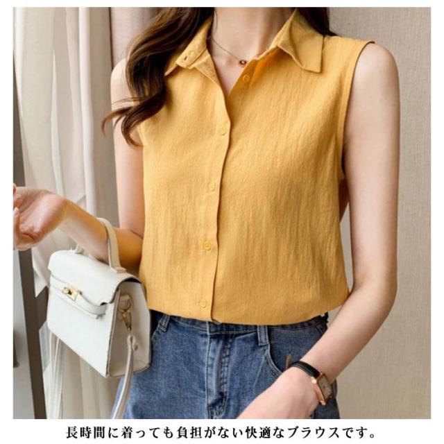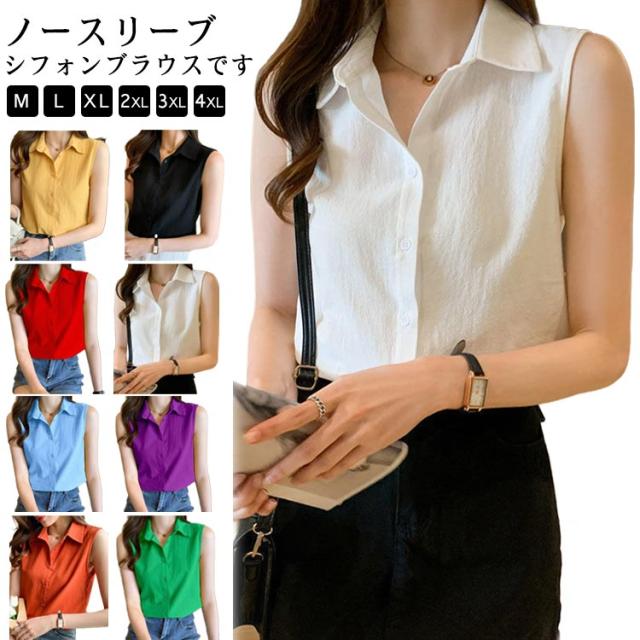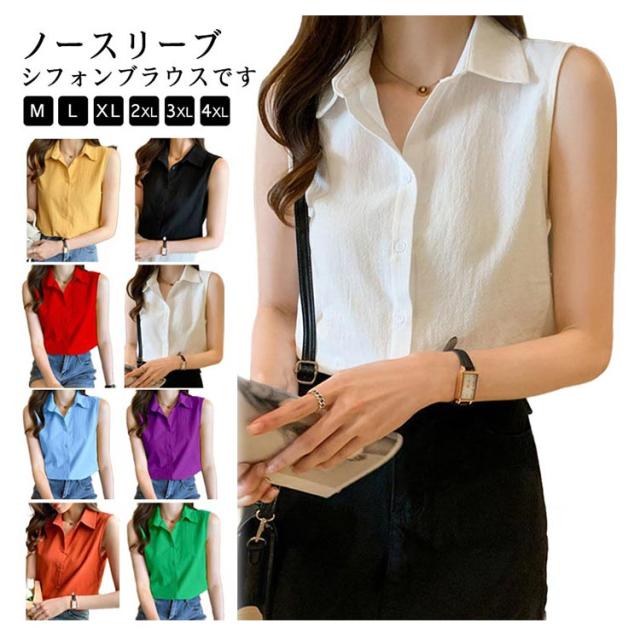 夏 ノースリーブ ブラウス シャツ 春 ノースリーブ 襟付き 薄手 開襟 シフォン シンプル トップス 可愛い シャツブラウス 袖なし きれいめ エレガント おしゃれ 春夏 無地 涼しい 体型カバー 夏服 カジュアル オフィス OL 通勤 ギフト