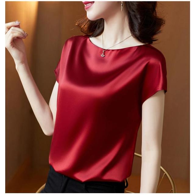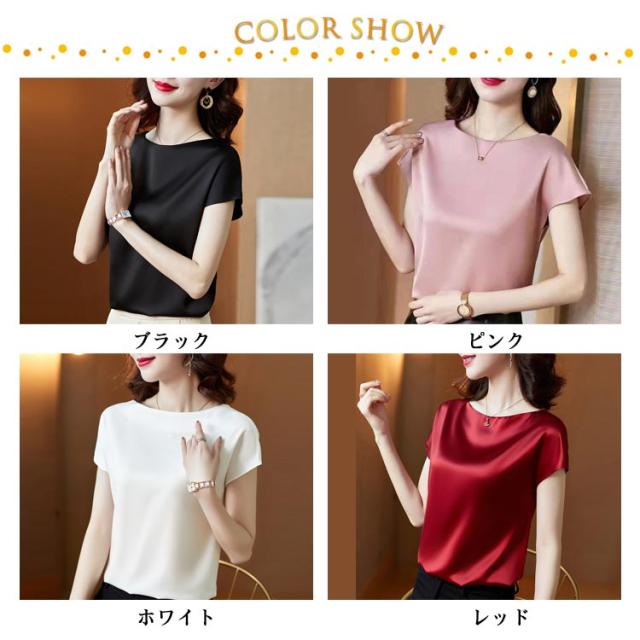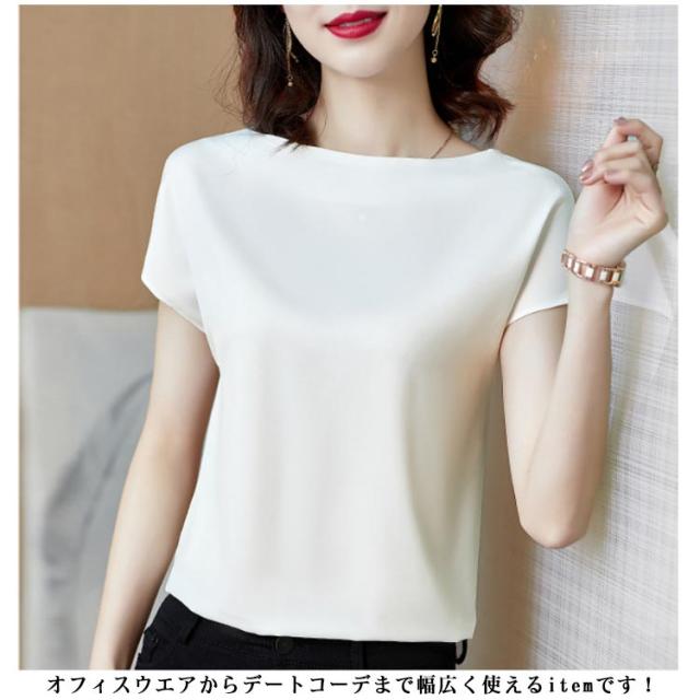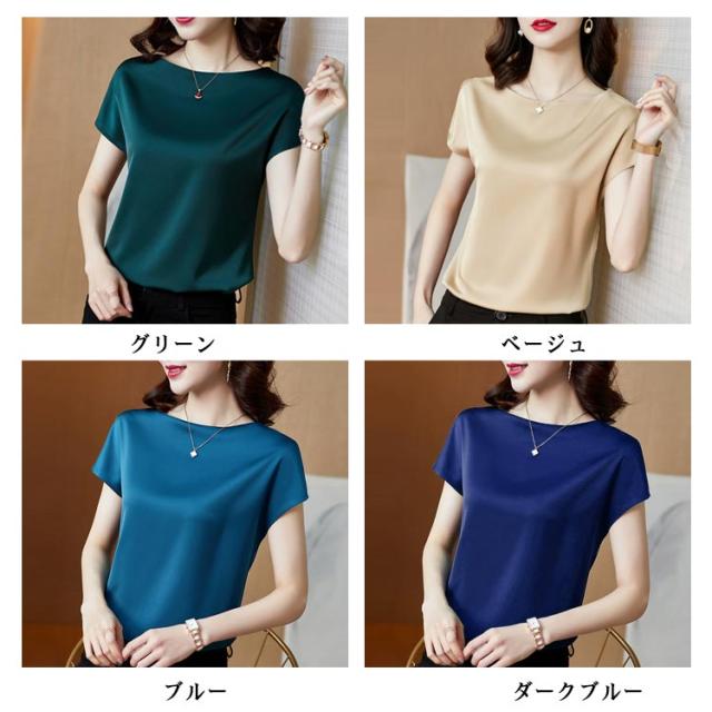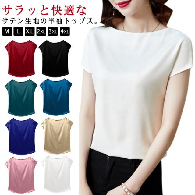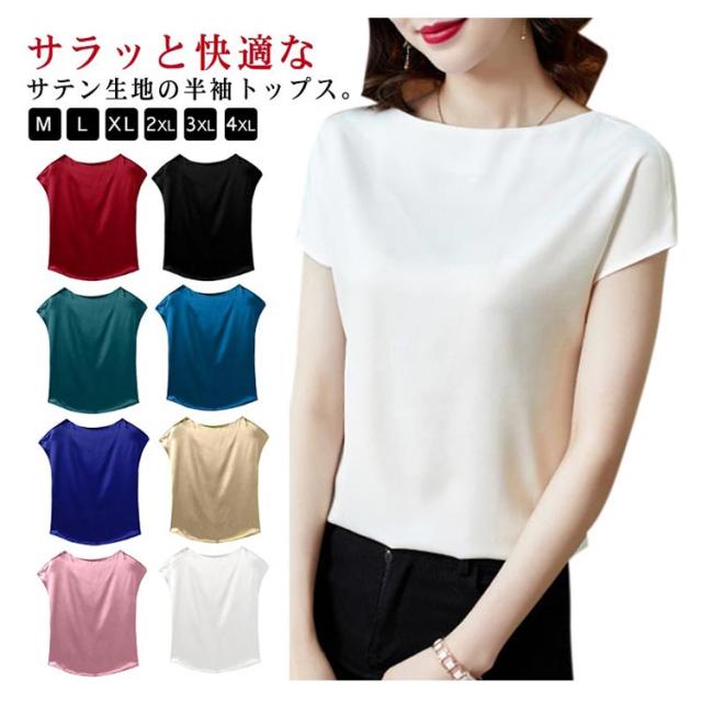 フレンチスリーブ 光沢感 半袖 トップス Tシャツ クルーネック 無地 フレンチスリーブ 夏 tシャツ サテン調 半袖tシャツ プルーオーバー 春 無地 夏服 春夏 シンプル 涼しい 通勤 夏物 大きサイズ おしゃれ ゆったり カジュアル 部屋着 きれいめ 通学 お出かけ