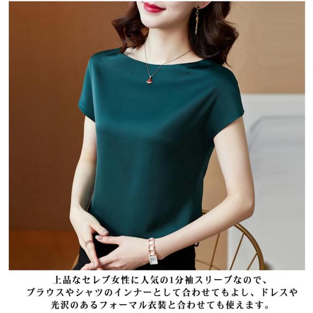 | サラッと快適なサテン生地の半袖トップス。 ノースリーブほど腕は出したくないとお悩みの女性にオススメの絶妙な丈感が魅力。 人気のハイウエストコーデにインしたり、そのままサラッと着てもOK! 上品なセレブ女性に人気の1分袖スリーブなので、ブラウスやシャツのインナーとして合わせてもよし、ドレスや光沢のあるフォーマル衣装と合わせても使えます。 シンプルな デザインなので、インナーとしての春 夏 秋 冬 の季節に合わせ、20代、30代、40代と年齢 を問わず おしゃれを 楽しんでいただけます。 オフィスウエアからデートコーデまで幅広く使えるitemです! | |