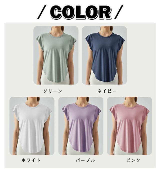 通気 Tシャツ レディース 薄手 半袖 可愛い ヨガウェア おしゃれ ヨガ フィットネスウェア フィットネスウェア スポーツウェア 丸み裾 ウェア 速乾 かわいい ストレッチ ヨガトップス トップス トップス フィットネス 無地 シンプル 運動着 涼しい