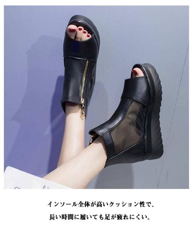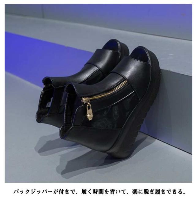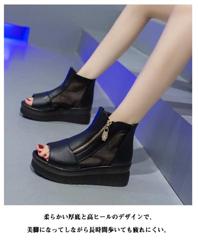 春ブーツ サンダル アンクルブーティ サマーブーツ 厚底サンダル レディース ブーツ スプリングブーツ 太めヒール サマーブーツ 夏ブーツ 通気性 ジッパー 歩きやすい 疲れない