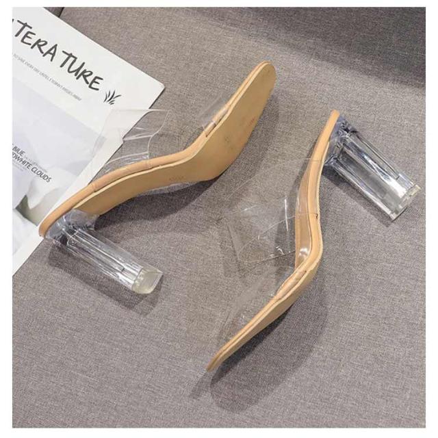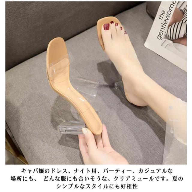 サンダル クリアサンダル レディース クリアミュール ビーチ ミュールサンダル ストラップ 透明 9cm 太ヒール クリアヒール 7cm キャバサンダル サボサンダル オープントゥ 透明 クリアミュール 歩きやすい 美脚 おしゃれ かわいい カジュアル靴 夏用