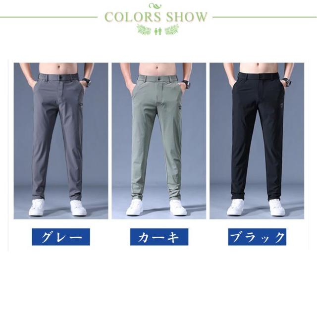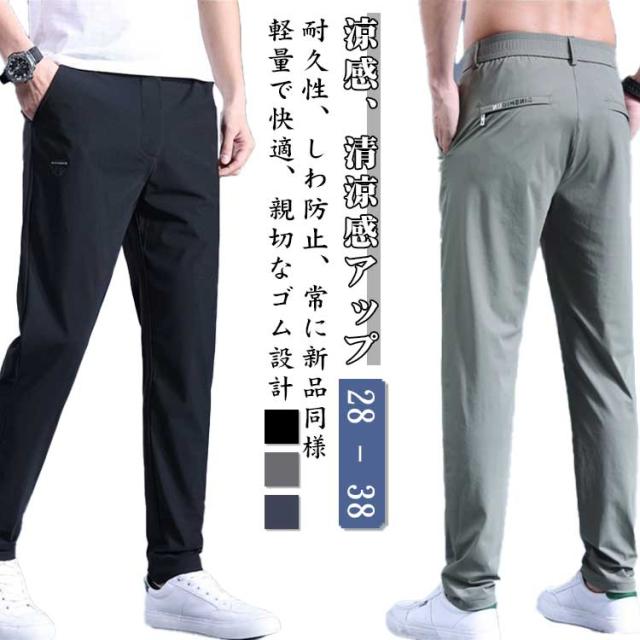 ゴルフ 夏 ゆったり 冷感パンツ 薄手 チノパンツ 接触冷感 ストレッチパンツ 通気 メンズ ロングパンツ スポーツパンツ メンズ メンズ アイスシルクパンツ 無地 トレーニングパンツ アイスシルクパンツ ゴムウエスト uvカット スラックス