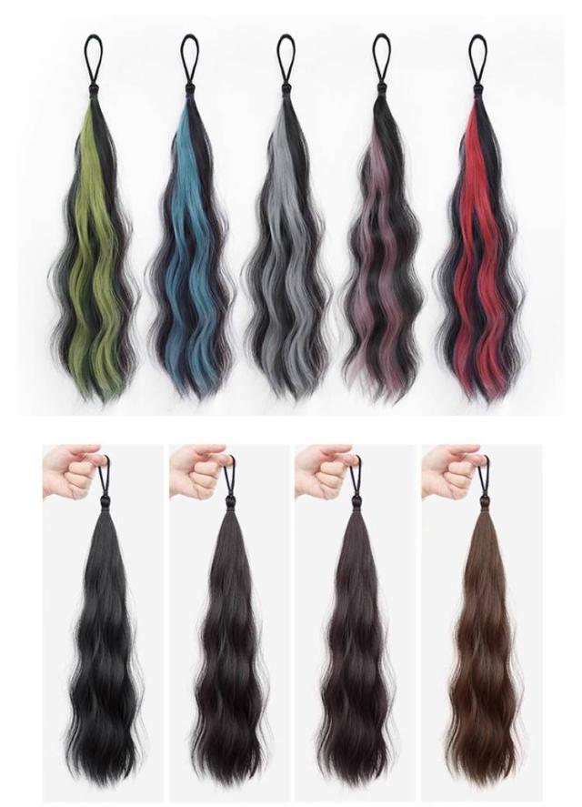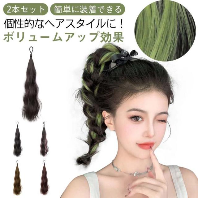 カラフル ヘアゴム ツインテール ヘアーエクステンション グラデーション 付け毛 コスプレ ポニーテール ヘアボリュームアップ つけ毛 派手 仮装 2本セット ヒップホップダンス ダンスヘア カラフル 全12色展開 2本セット 編み込み