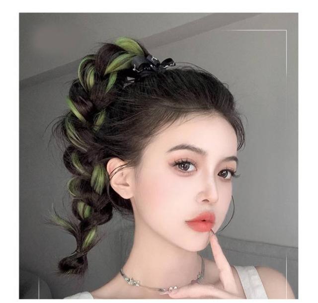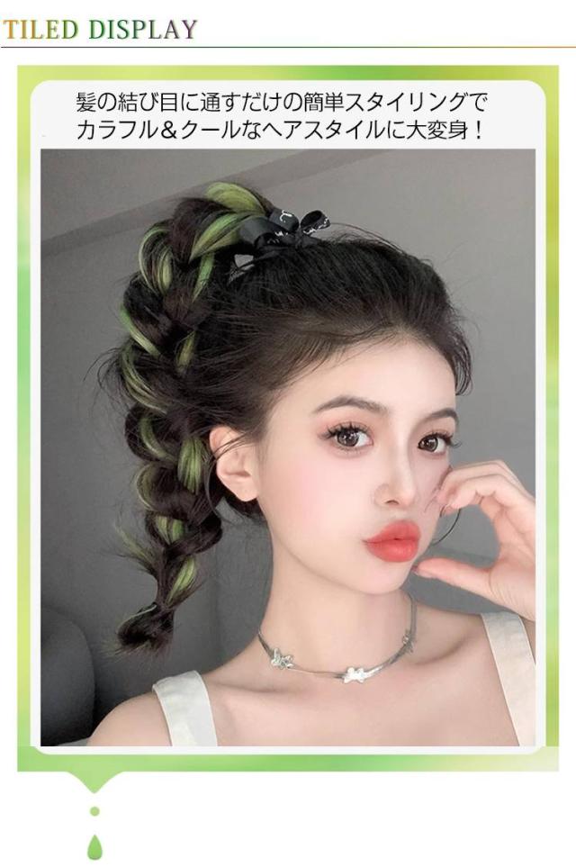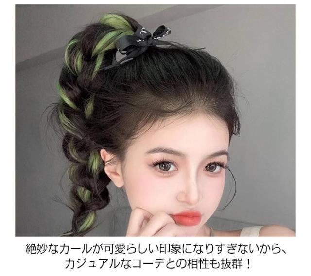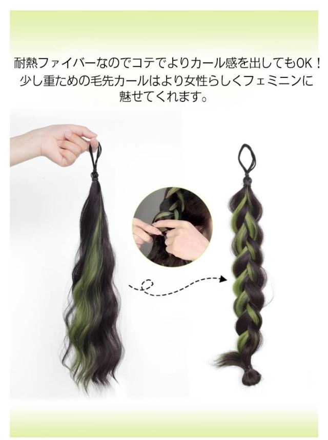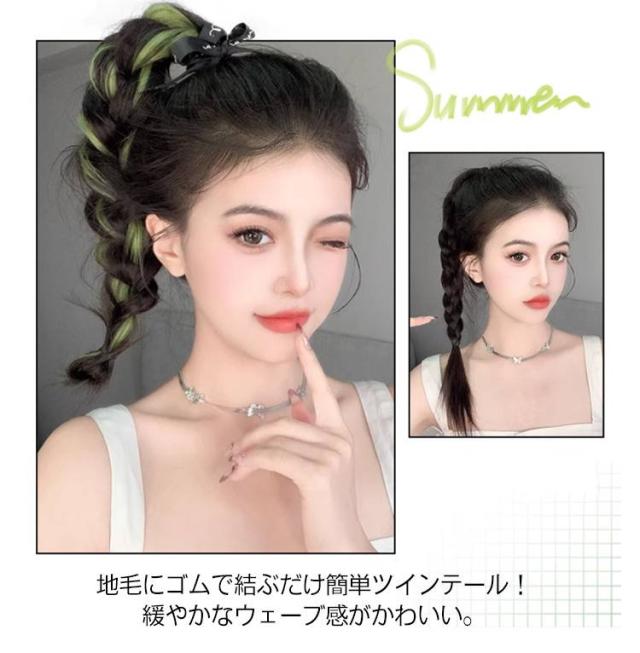 | 髪の結び目に通すだけの簡単スタイリングでカラフル&クールなヘアスタイルに大変身! 地毛にゴムで結ぶだけ簡単ツインテール!緩やかなウェーブ感がかわいい。 耐熱ファイバーなのでコテでよりカール感を出してもOK! 少し重ための毛先カールはより女性らしくフェミニンに魅せてくれます。 絶妙なカールが可愛らしい印象になりすぎないから、カジュアルなコーデとの相性も抜群! 太いゴムで結ぶと下へずれにくくなり、安定感がUP。地毛がボブ〜ミディアムくらいの長さの方におすすめです♪ | |